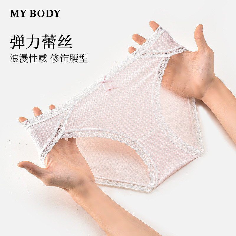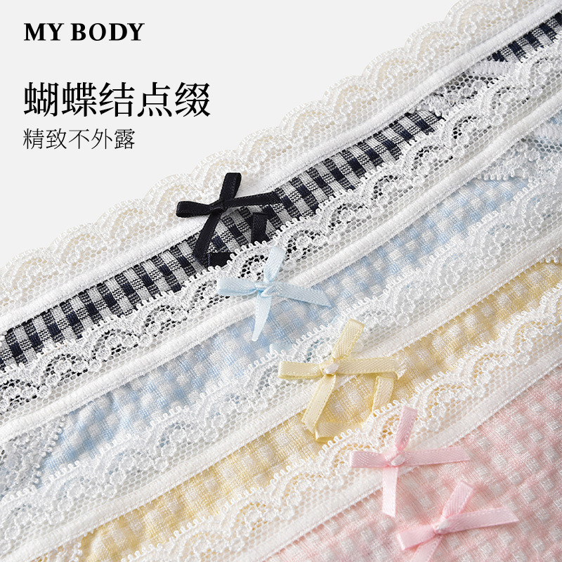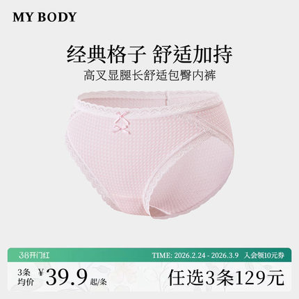 3件129|商场同款MYBODY新款内裤格子提花高叉显腿长包臀三角裤女