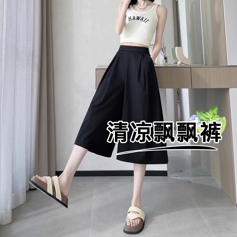七分阔腿裤女夏季爆款小个子休闲八分裤时尚气质韩系宽松半身裙裤