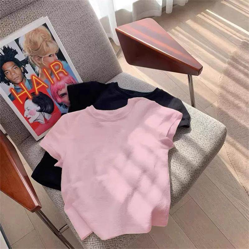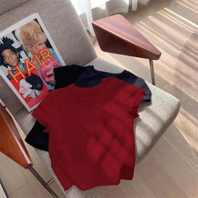 中大儿童纯棉短袖t恤2025夏季新款女童洋气宽松夏装正肩红色上衣