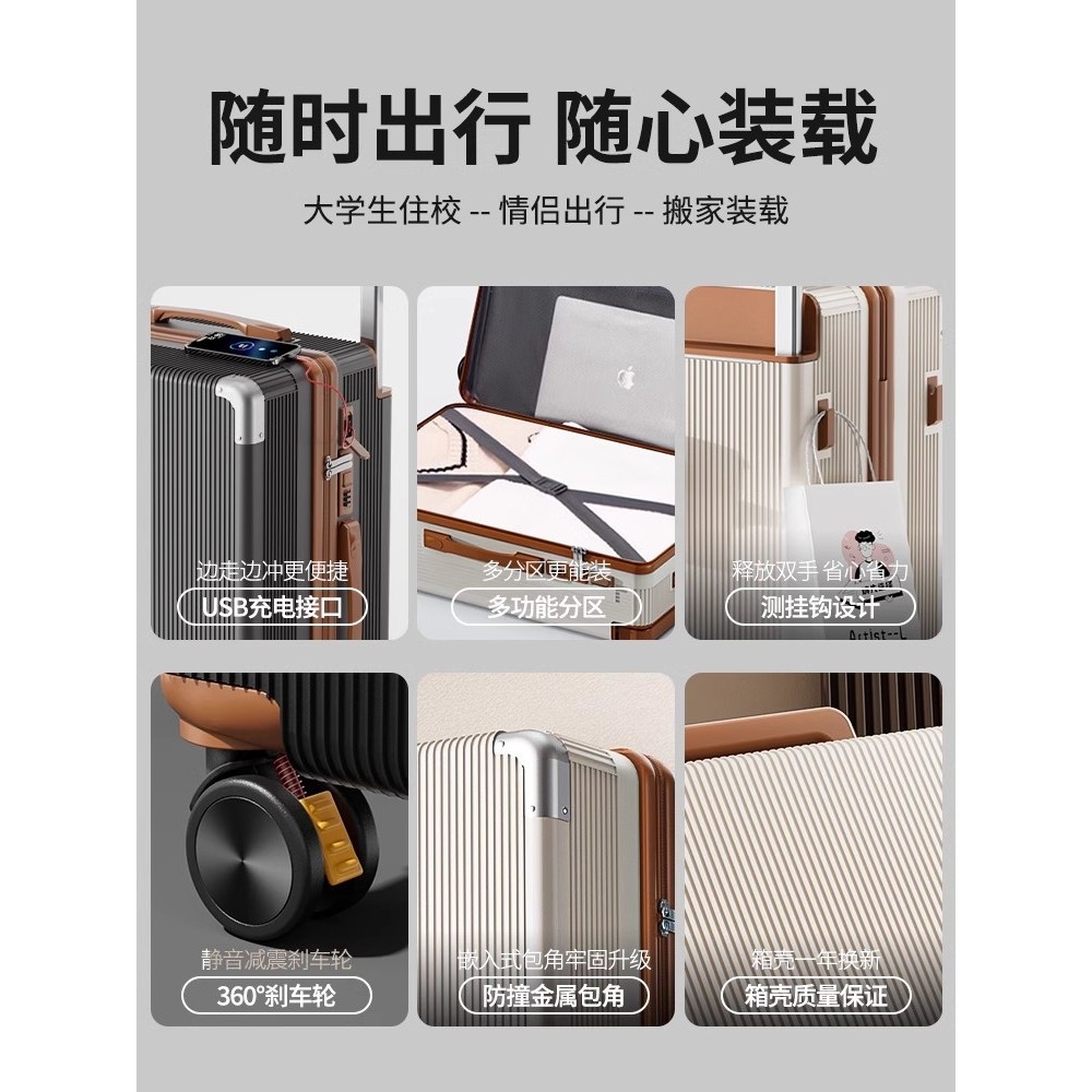 外交官宽拉杆静音登机USB充电箱