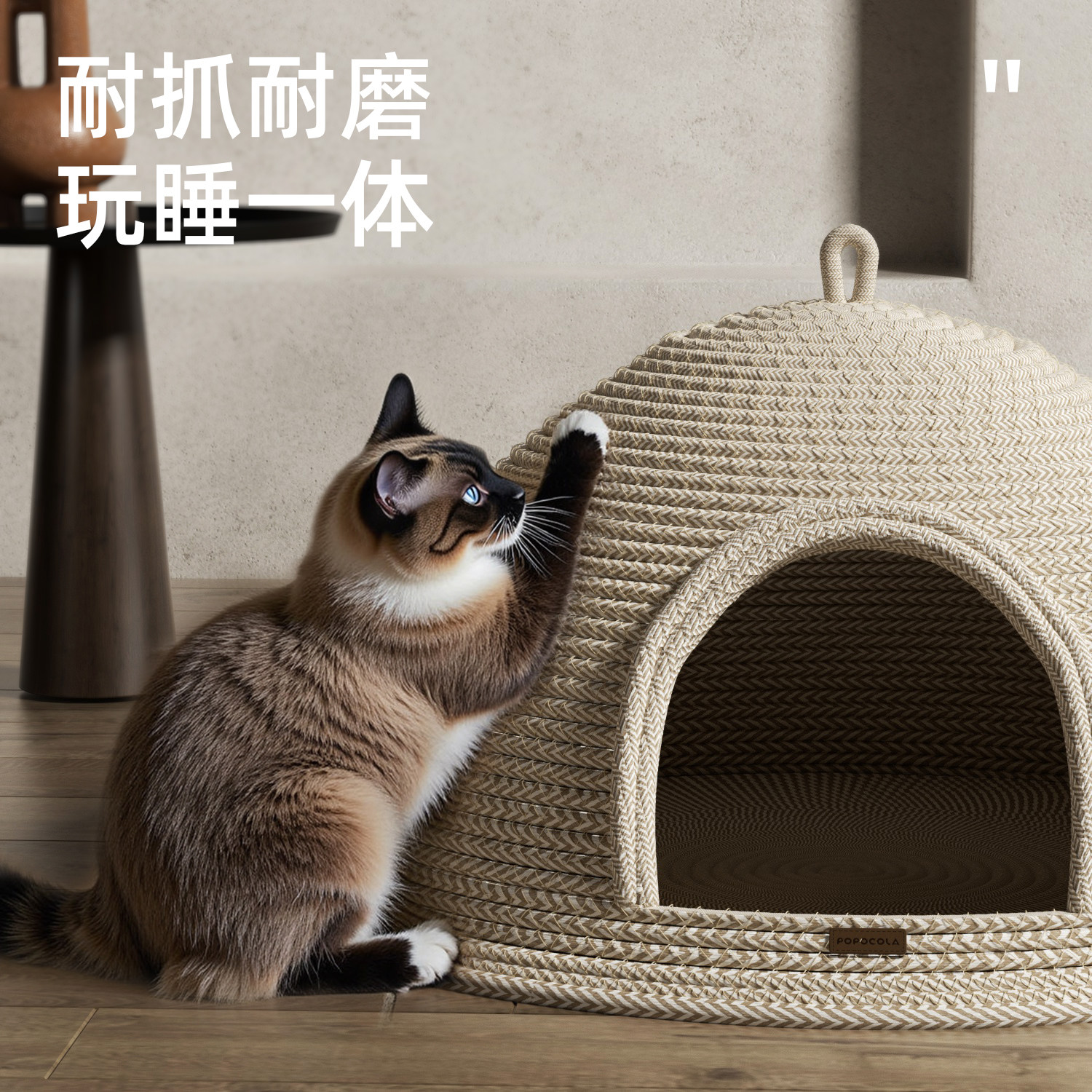 Petpeace猫窝封闭式四季通用安全感猫抓板编织半猫咪躲避屋蒙古包