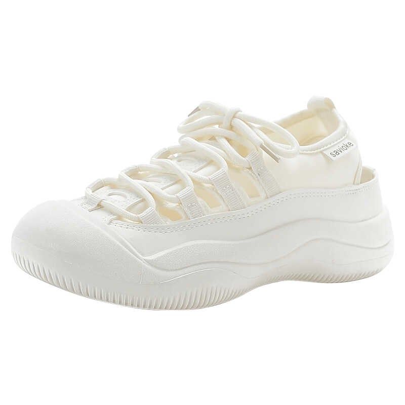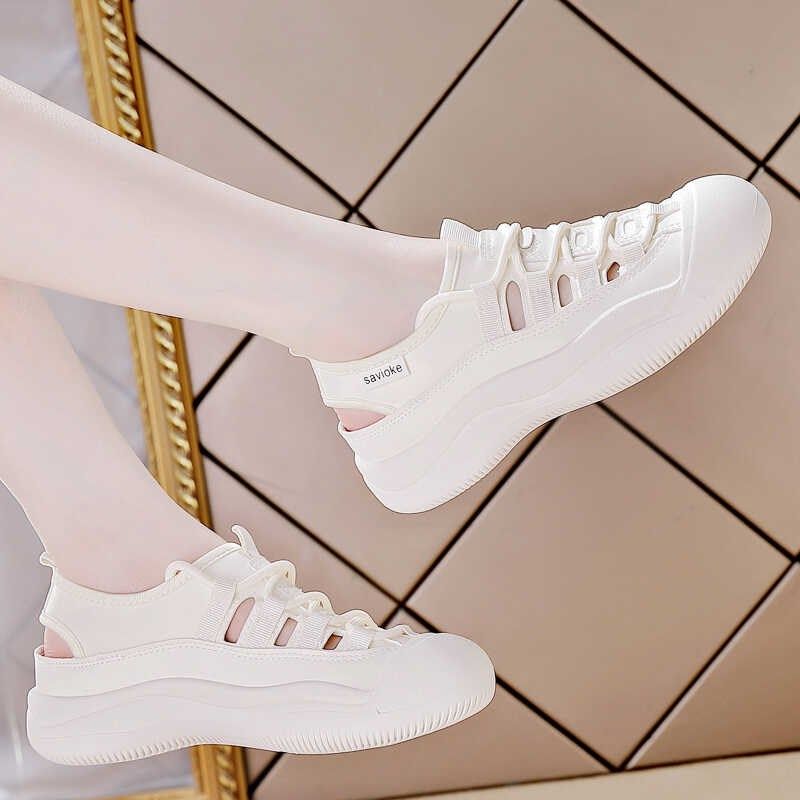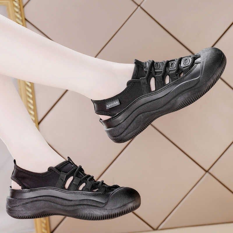 真皮女鞋踩屎感孕妇包头凉鞋女2025新款夏季透气小白鞋镂空洞洞鞋