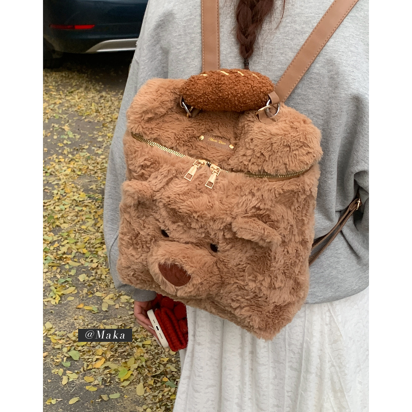 可爱熊头双肩包包女冬季2025新款潮时尚卡通毛绒包休闲大容量背包
