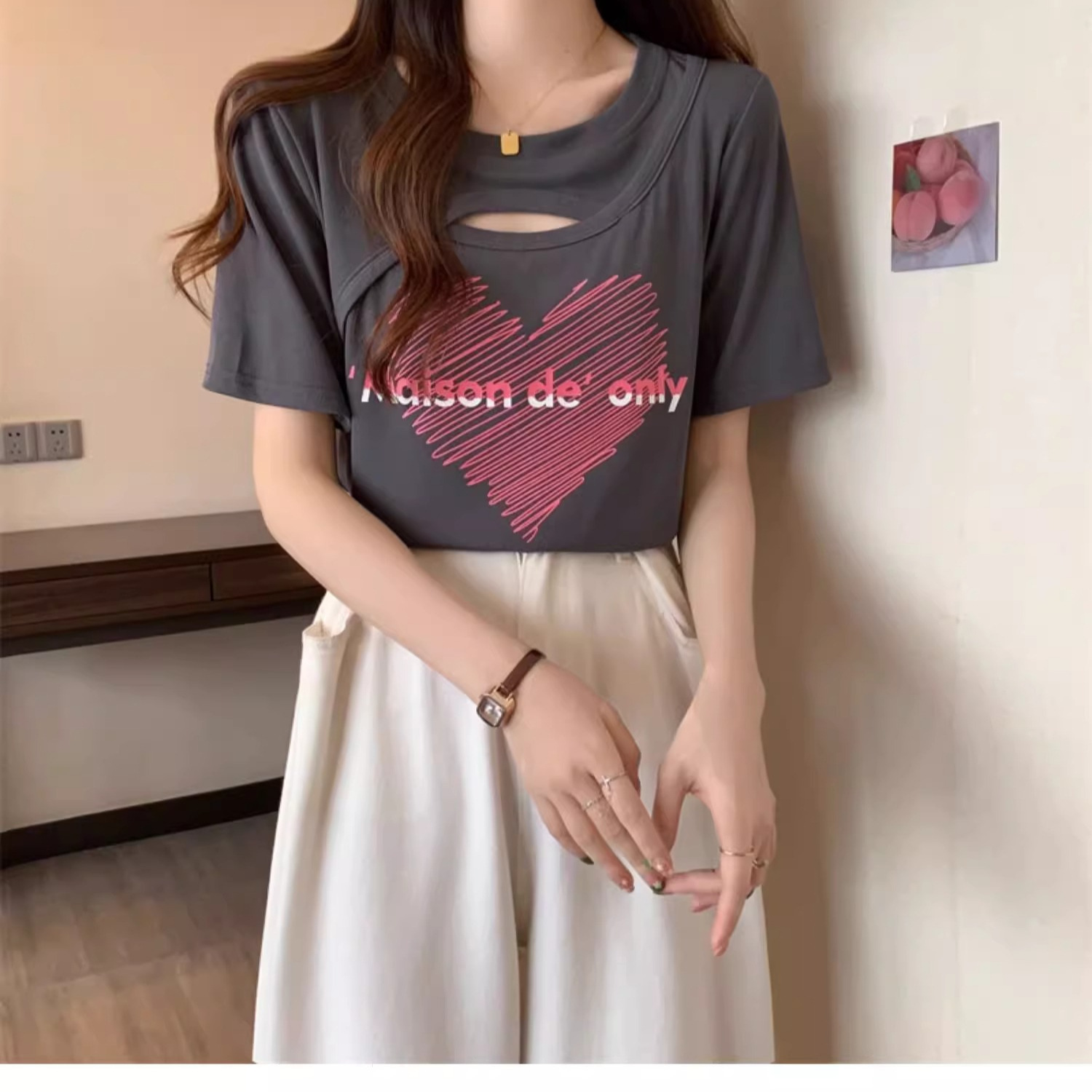大码女装夏季新款短袖t恤女时尚洋气胖mm宽松显瘦设计感小众上衣