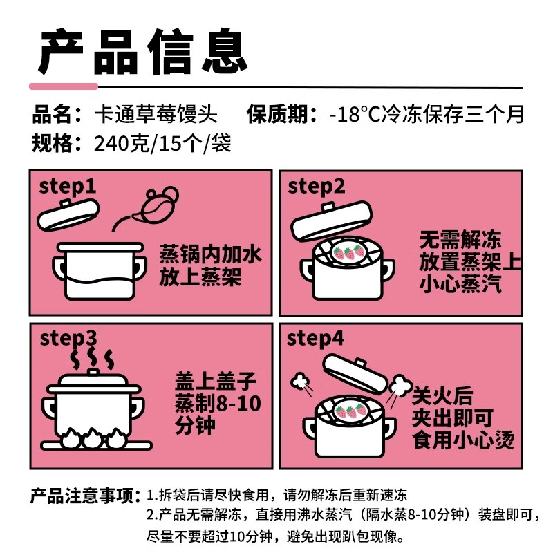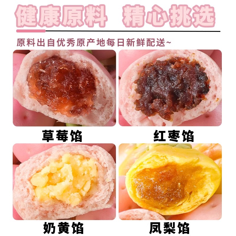 手工现做卡通草莓包子馒头半成品主食面点儿童搭配婴幼儿辅食早餐