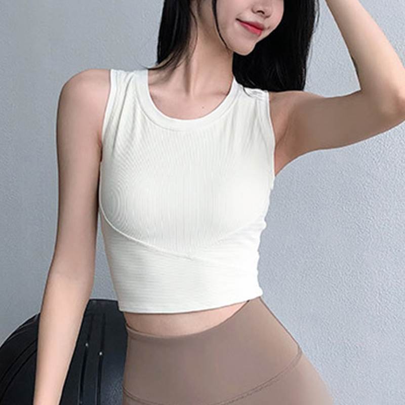 大牌同款瑜伽运动背心女外穿紧身显瘦短款带胸垫跑步速干健身上衣