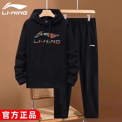 李宁加绒运动套装男士秋冬季新款保暖连帽卫衣卫裤宽松休闲运动服