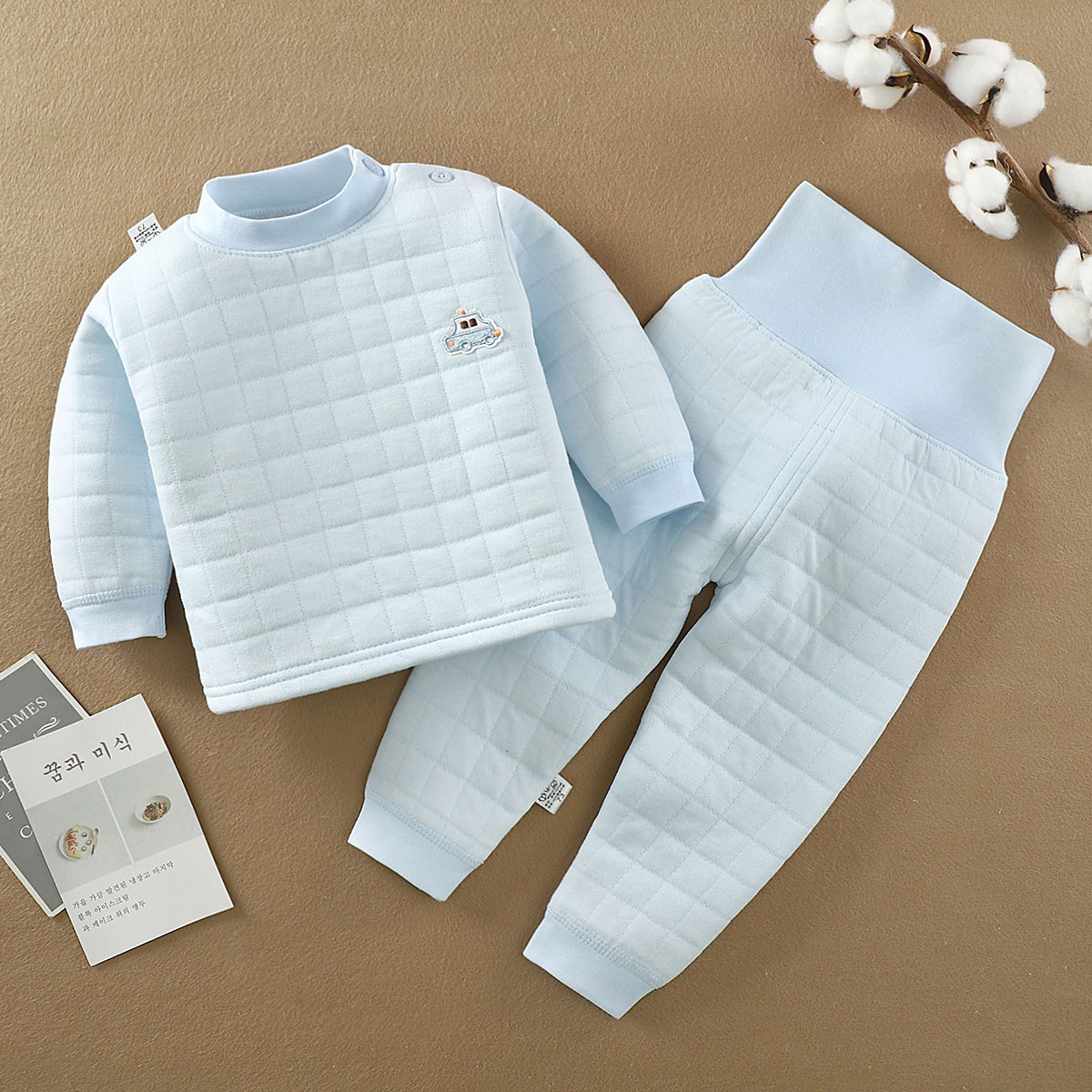 宝宝内衣套装秋冬婴幼儿童套装纯棉三层夹棉睡衣加厚保暖套装0-3