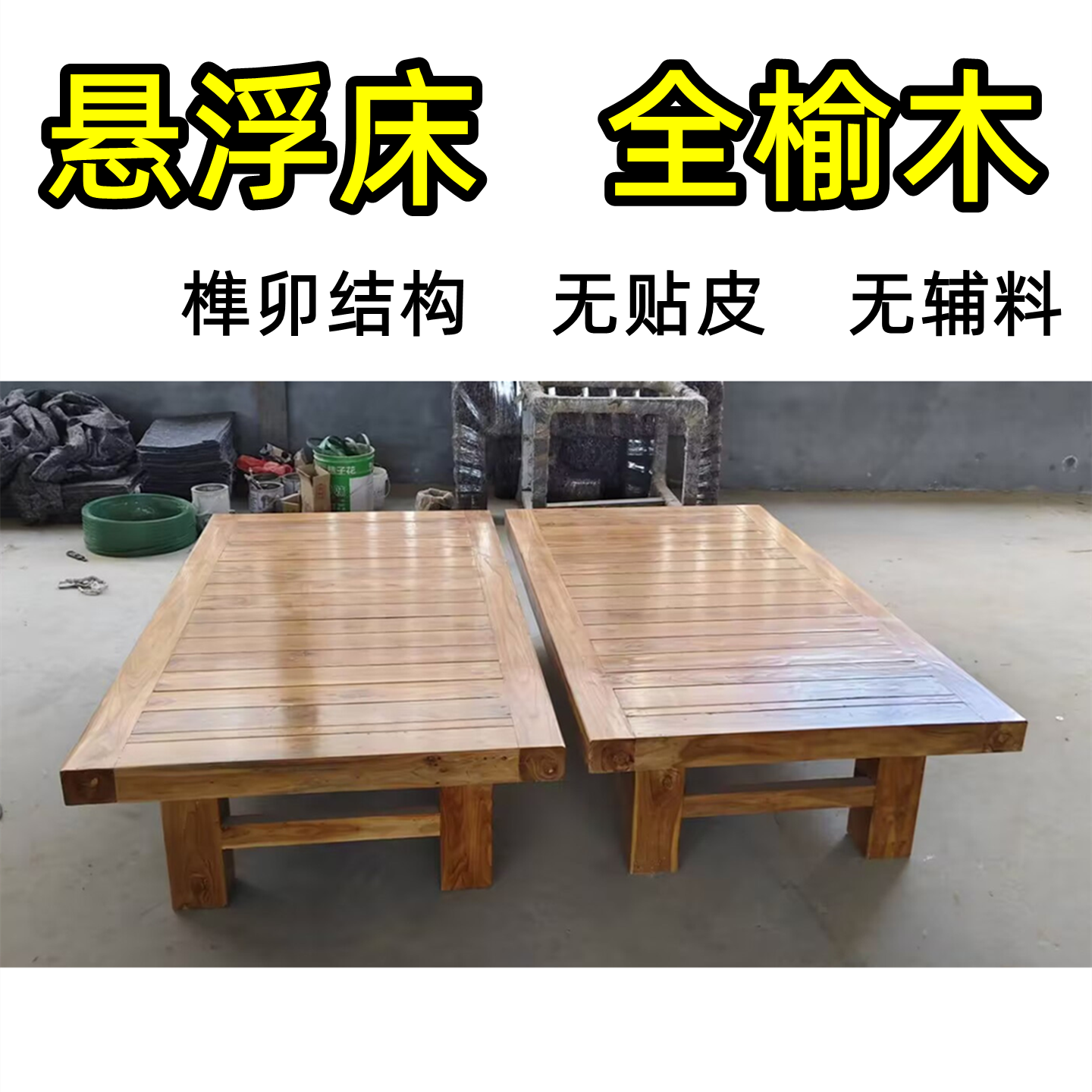 悬浮床老榆木悬浮床实木榻榻米简约现代地台无床头单人双人架子床