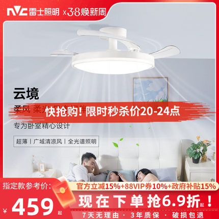 雷士照明风扇灯客厅餐厅卧室灯吊扇灯吊灯简约电风扇枕边风吸顶灯