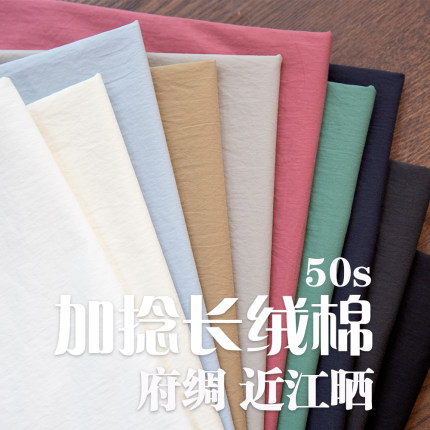 日本进口50支加捻长绒棉柔软微皱全棉府绸近江晒风格服装纯色面料