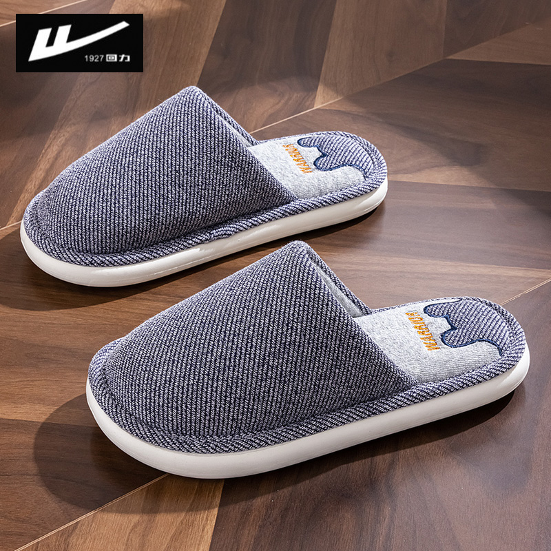 回力日式棉拖鞋女春秋季情侣家居室内木地板软底防滑亚麻拖鞋男夏