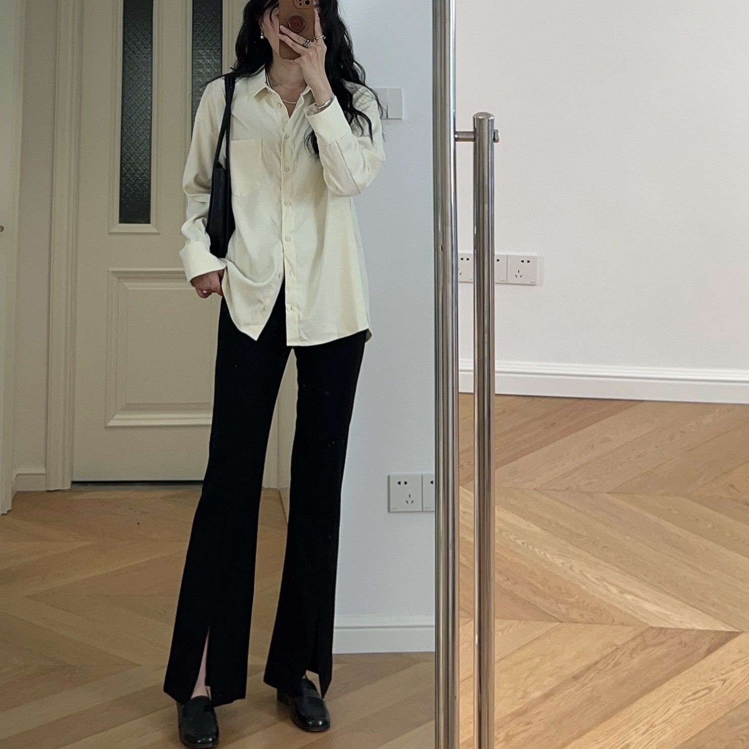 春夏新款 美式纯色中高腰前开衩开叉微喇叭裤休闲裤黑色 0.38KG