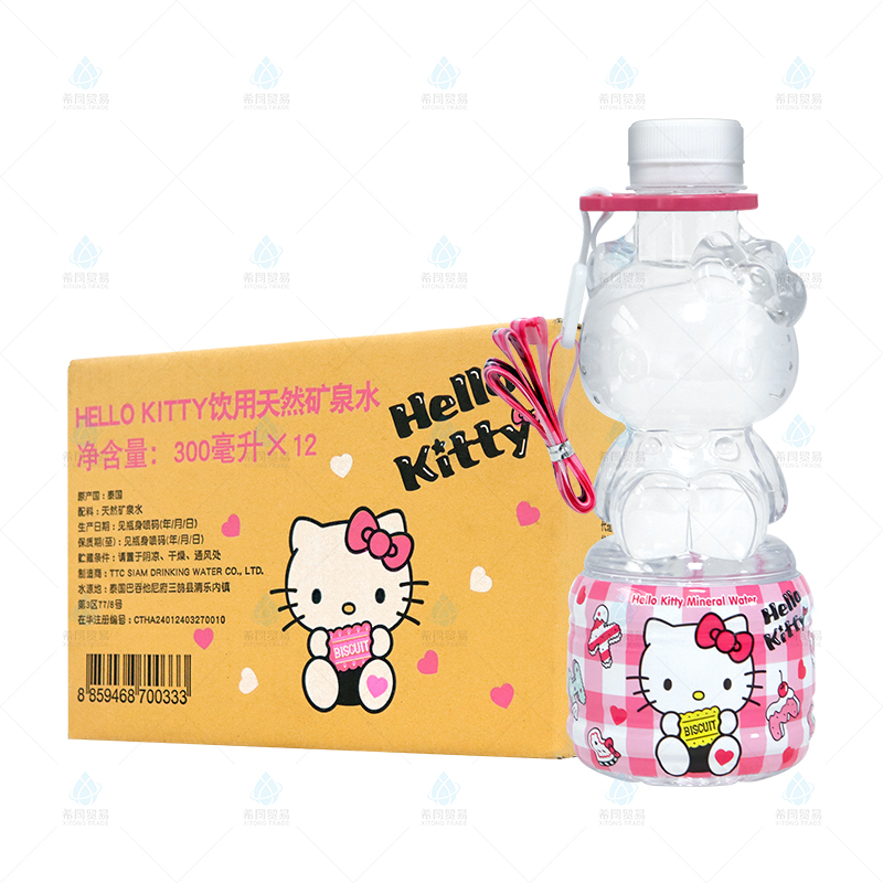 泰国HelloKitty天然矿泉水300ml*6瓶可爱瓶装一整箱3D凯蒂猫瓶身
