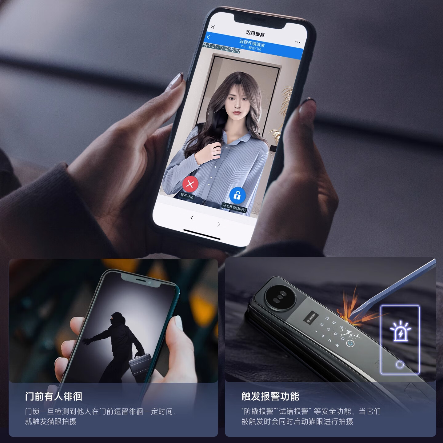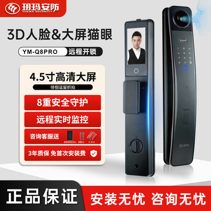 玥玛智能门锁可视对讲3D人脸指纹防盗门密码锁猫眼电子锁入户门锁