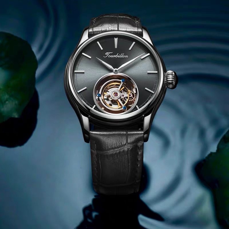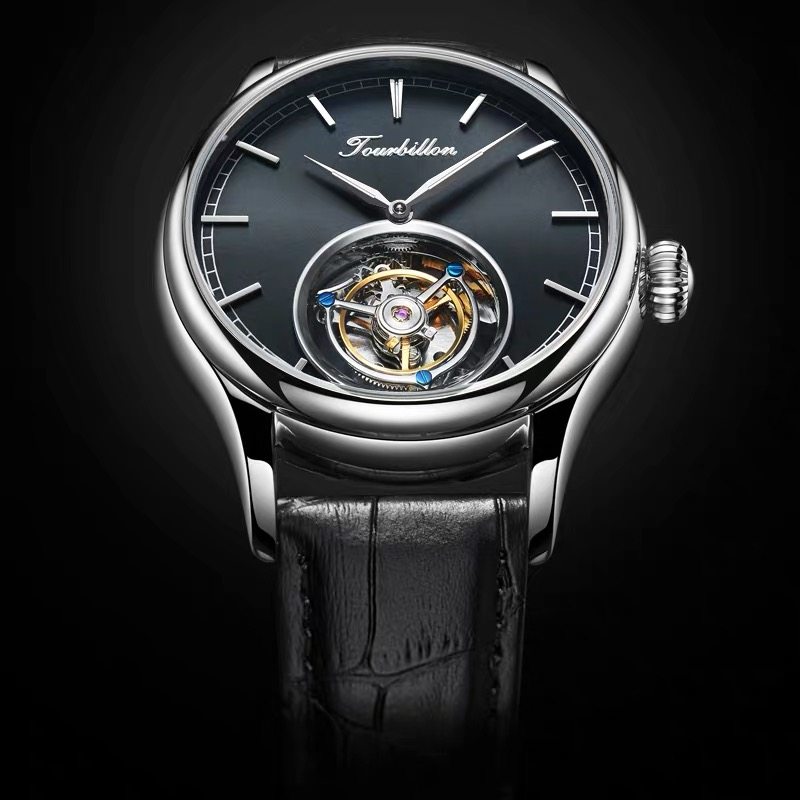 私人定制 经典条丁 陀飞轮机械手表男士真皮表带防水高档礼品手表