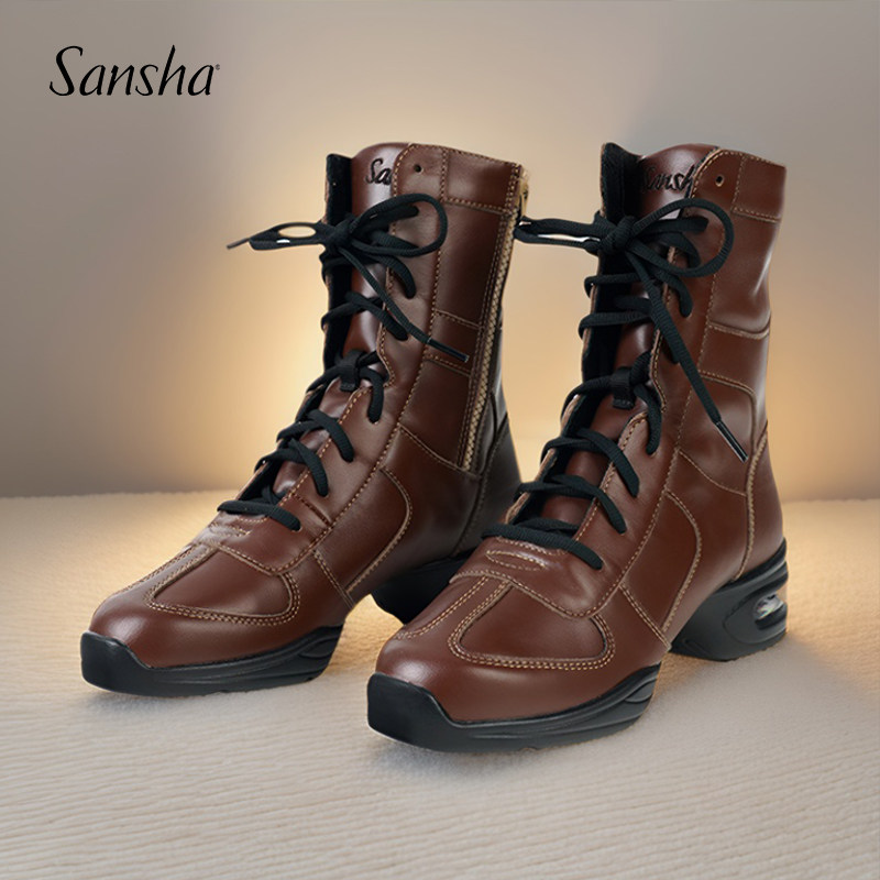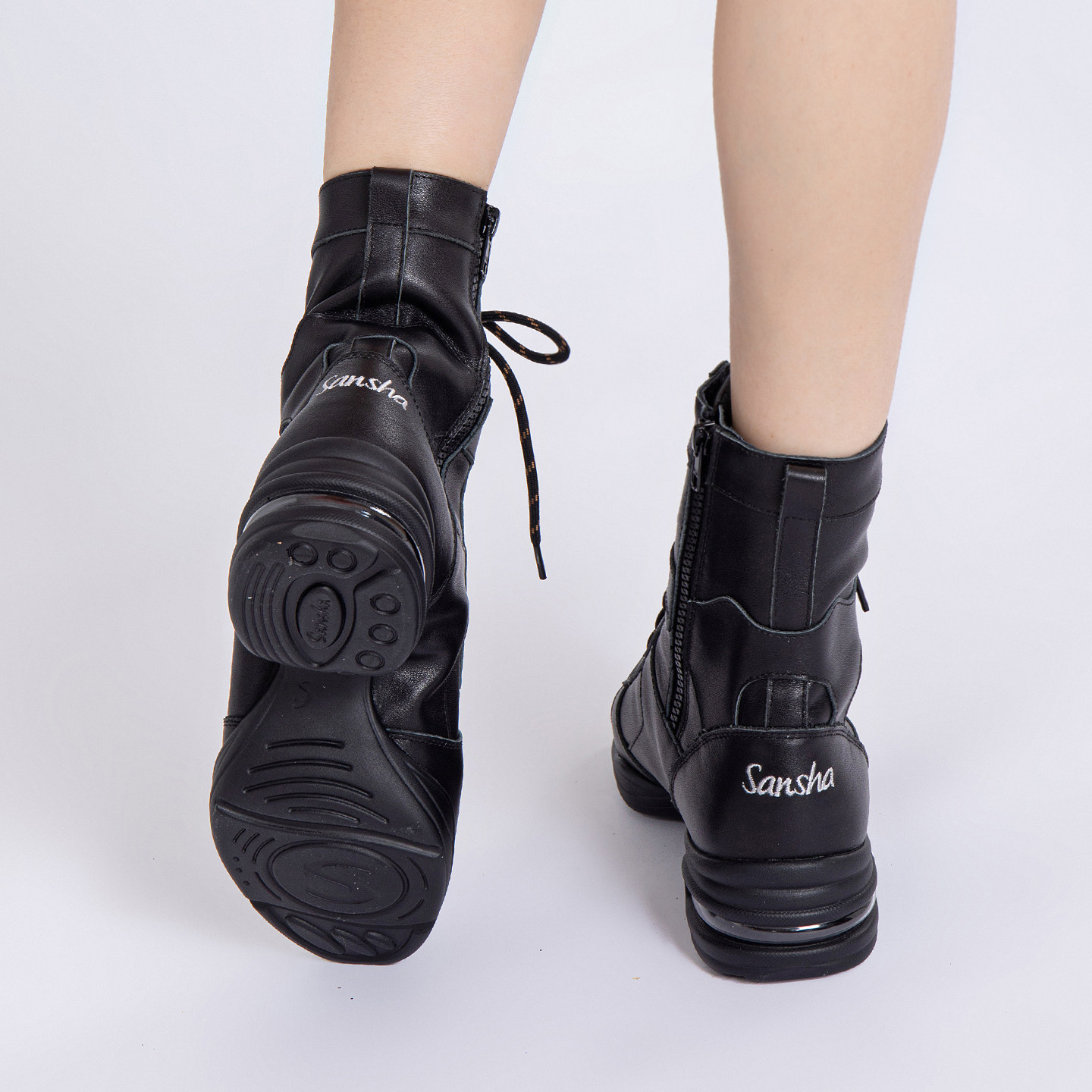 sansha 法国三沙现代舞鞋 牛皮马丁靴侧拉链爵士舞蹈鞋广场舞跳舞