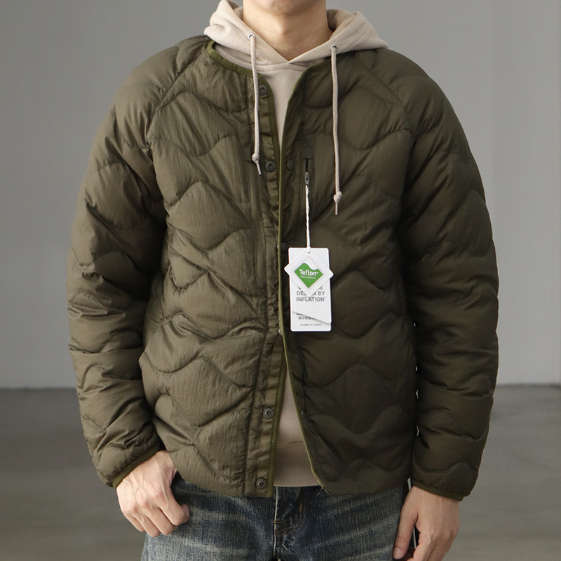 特清 M65三防绗缝内胆羽绒服男轻薄日系复古白鸭绒飞行员夹克外套