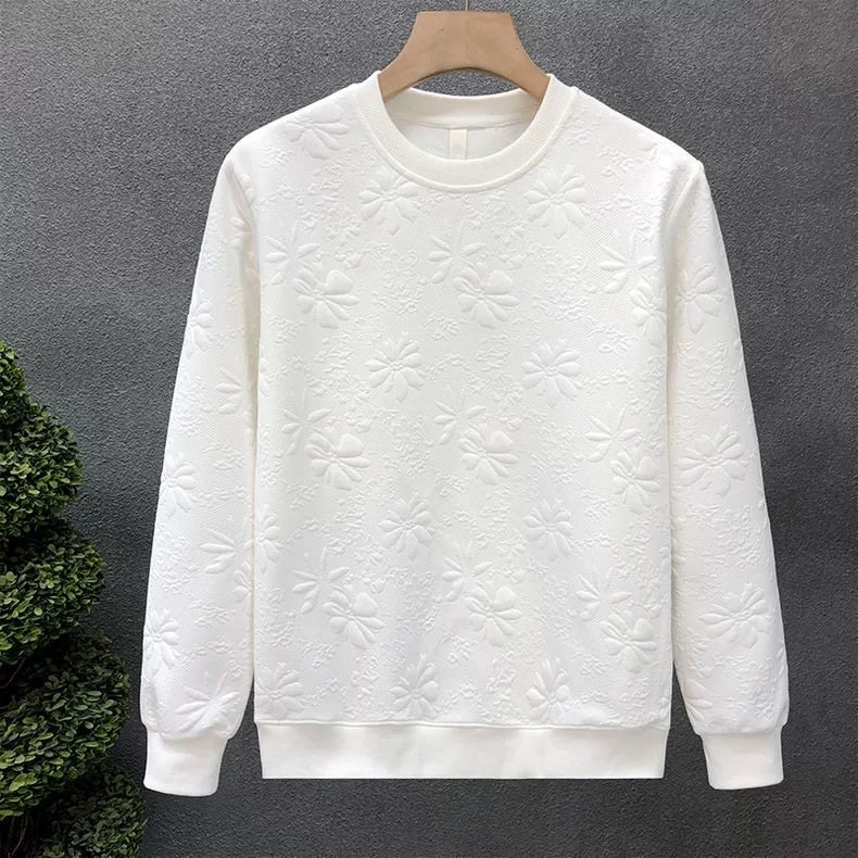 高品质提花痞帅卫衣男早秋圆领长袖打底衫2025春秋季新款男士上衣