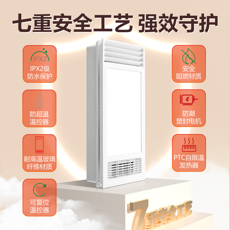 公牛浴霸灯卫生间取暖集成吊顶防水风暖照明排气扇一体浴室暖风机