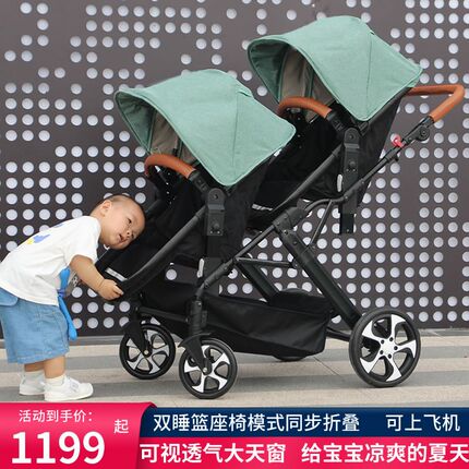 双胞胎婴儿车推车二胎 大小宝 A双人推车可坐可躺 轻便双睡篮折叠