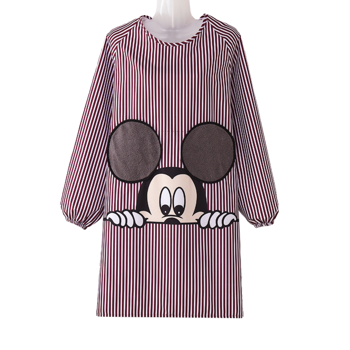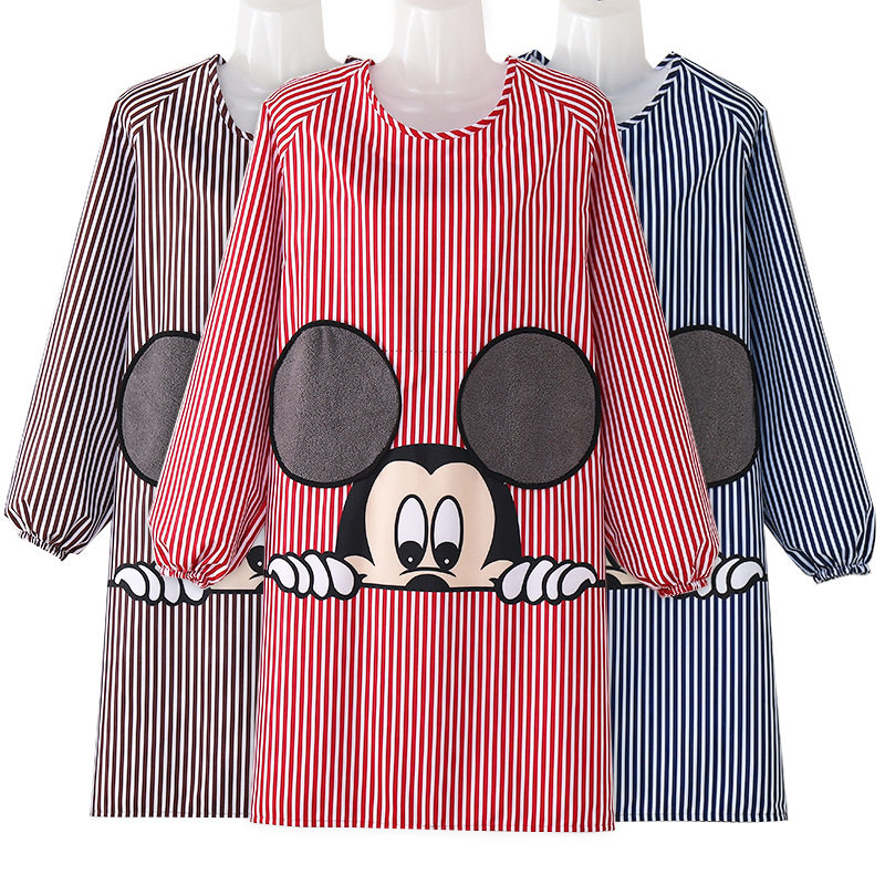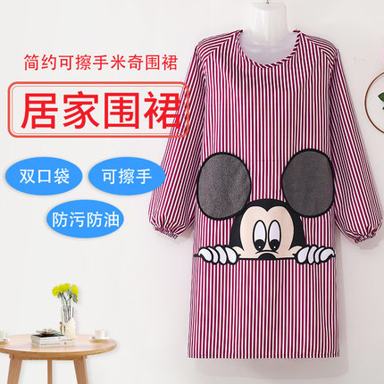 新款防泼水反穿衣米奇长袖围裙可擦手防水防油厨房做饭罩衣围腰