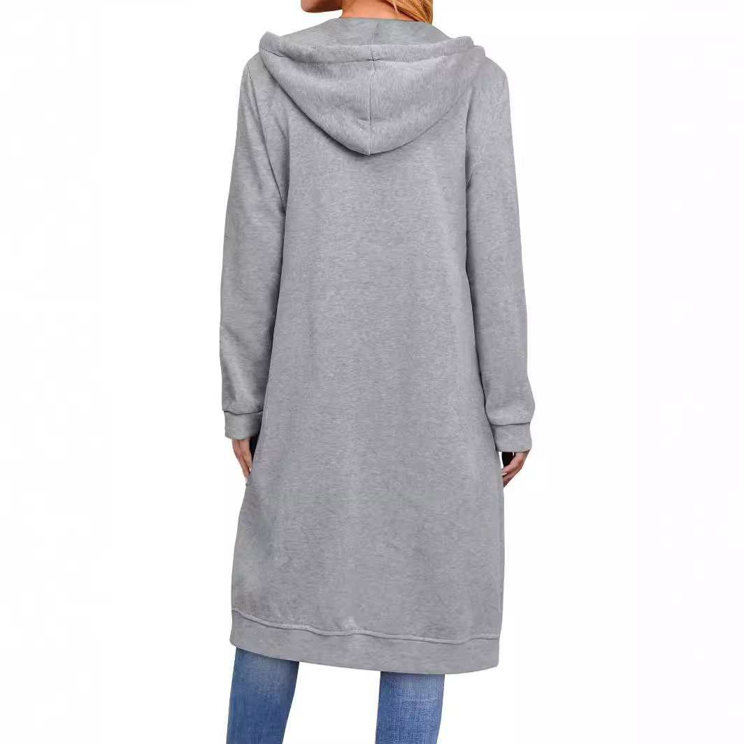 Autumn winter women's loose zipper long cardigan jacket top