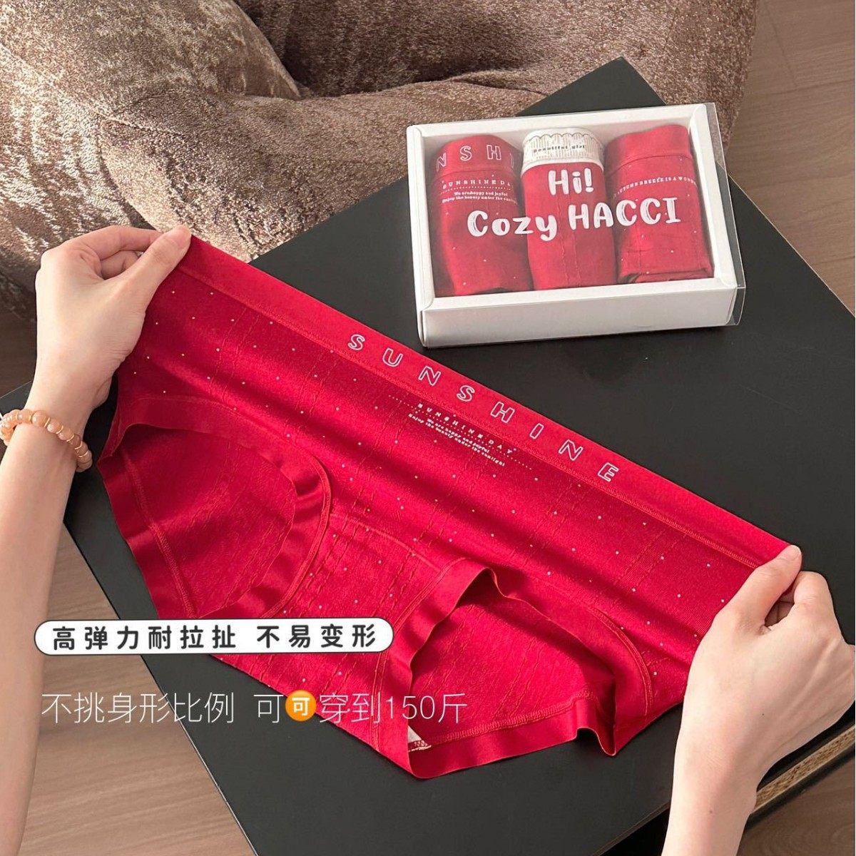 2026元旦礼盒格纹本命年幸运安可拉10A纯棉档盒装内裤少女三角裤