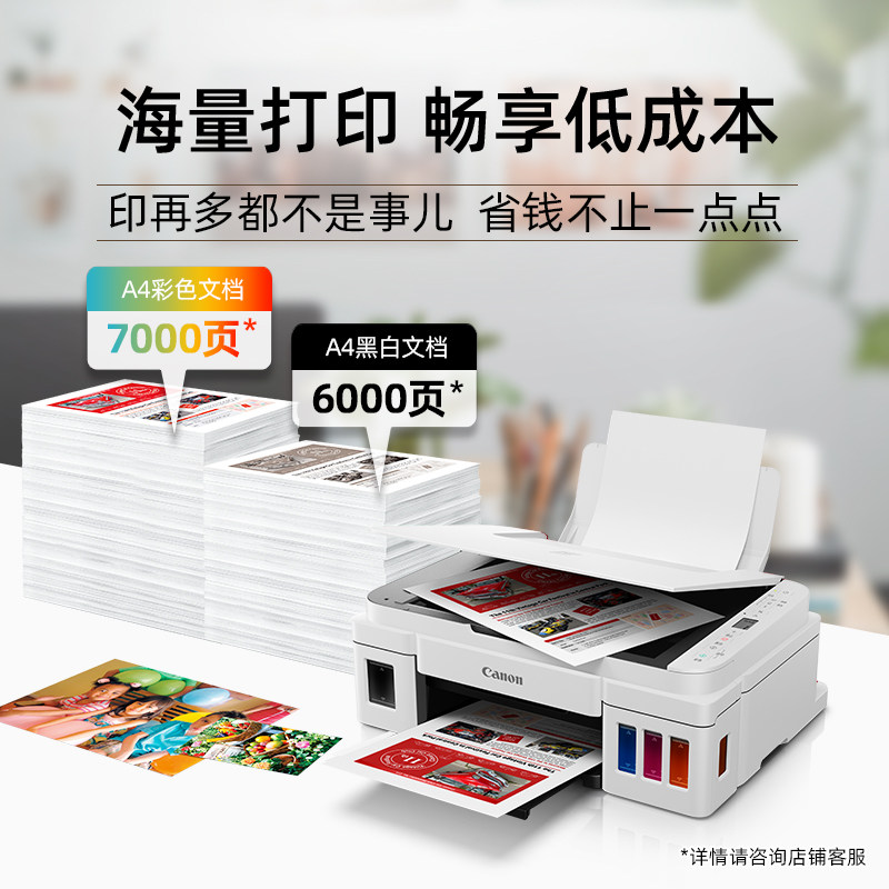 【自营】佳能G3810原装彩色A4家用打印机手机无线照片办公复印扫描学生家用试卷错题一体机
