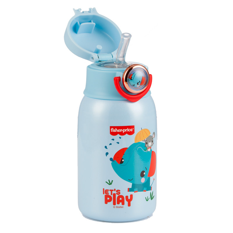 费雪儿童不锈钢吸管杯保温水杯学生运动水杯子硅胶鸭嘴450ML便携