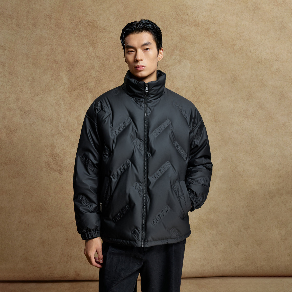 杰克琼斯男装秋秋冬羽绒服新款时尚衣身压胶字母立领宽松保暖上衣
