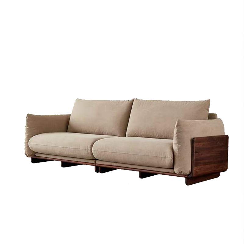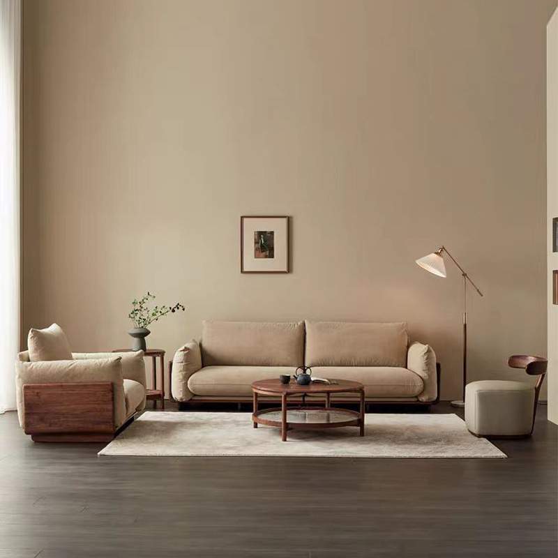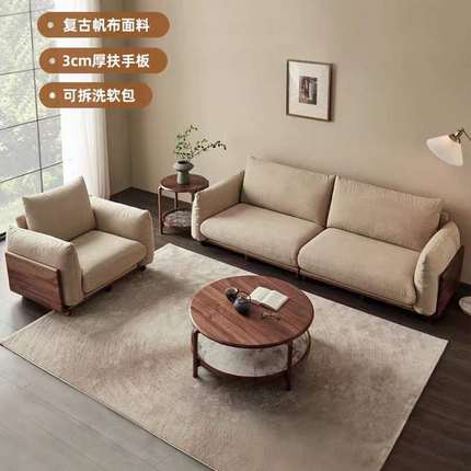 简约黑胡桃木小户型帆布艺沙发组合全实木客厅现代简约北欧四人位