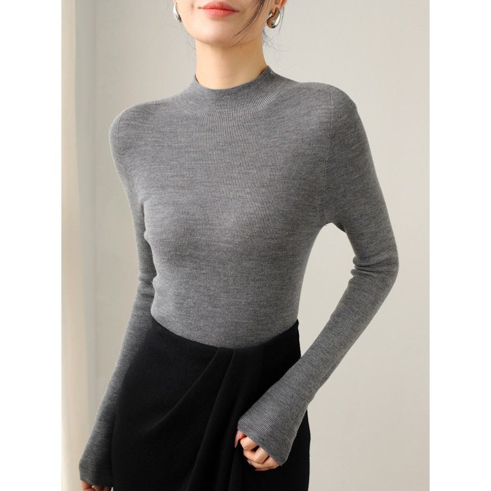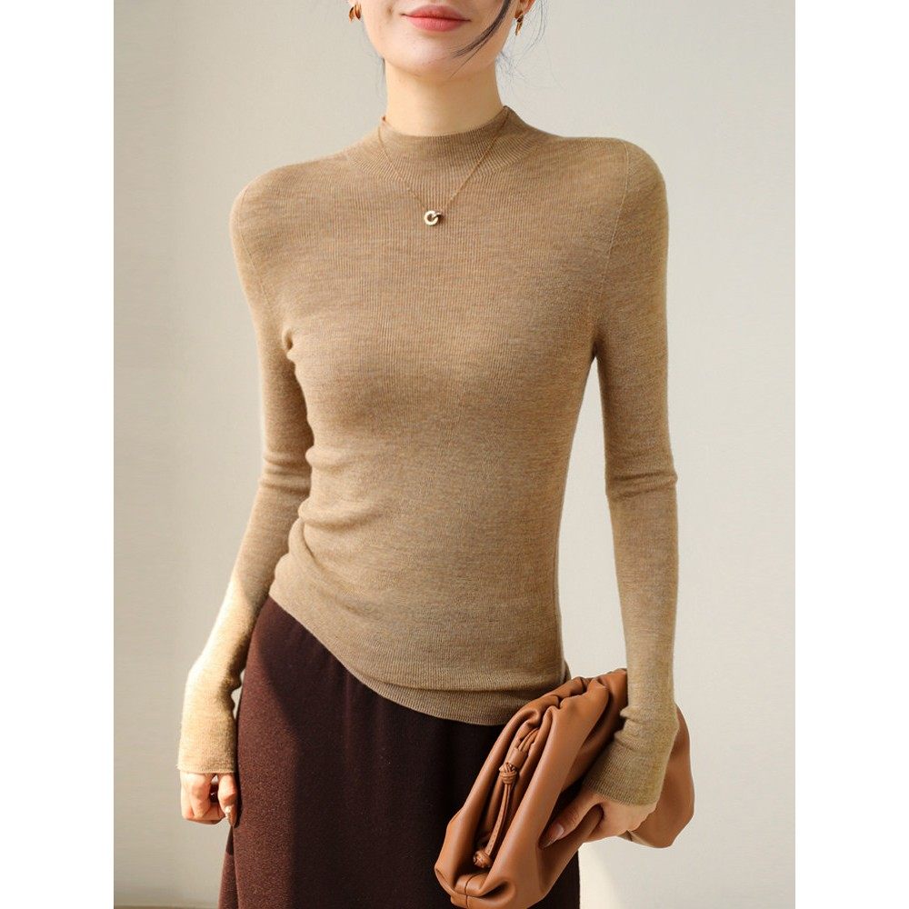 高端扬子纱半高领无缝一体套头针织衫女秋修身全羊毛打底毛衣白色