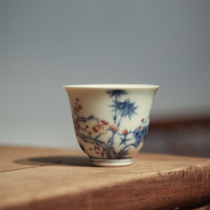 淘福仿古釉青花茶杯釉里红矾红陶瓷品茗杯主人杯功夫茶具小号单杯