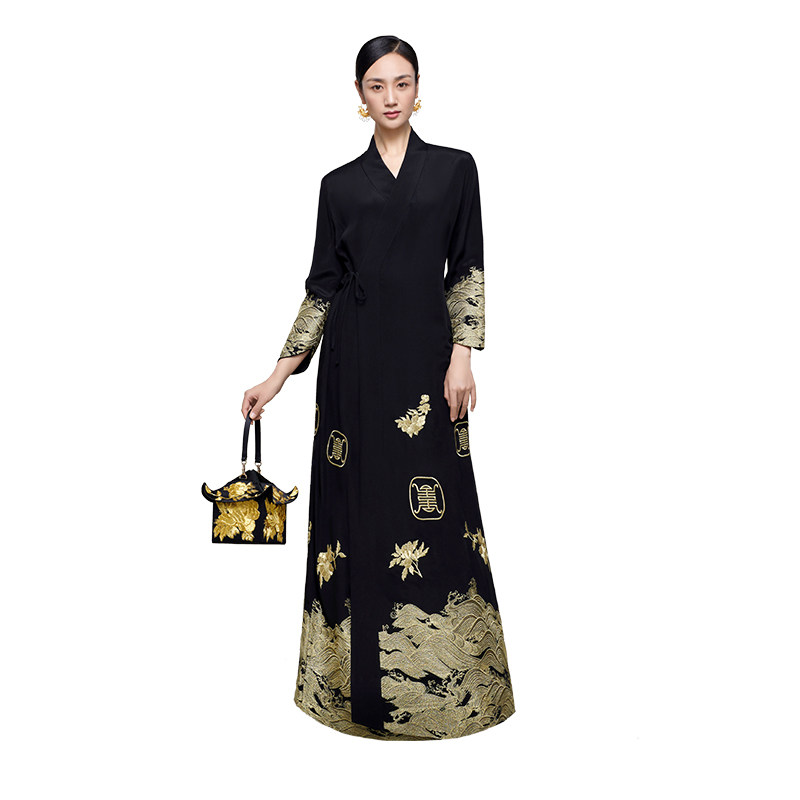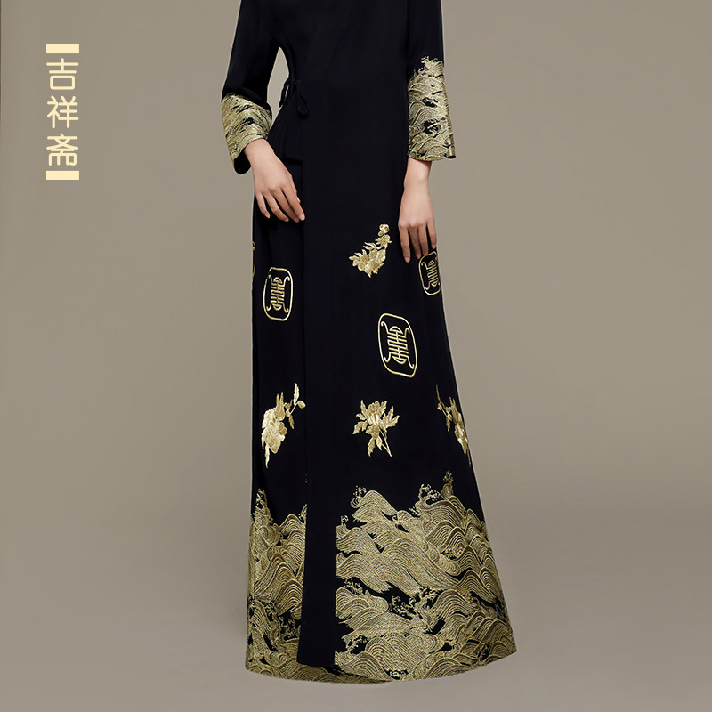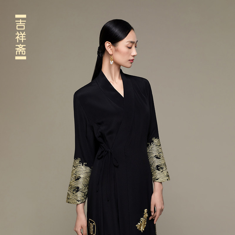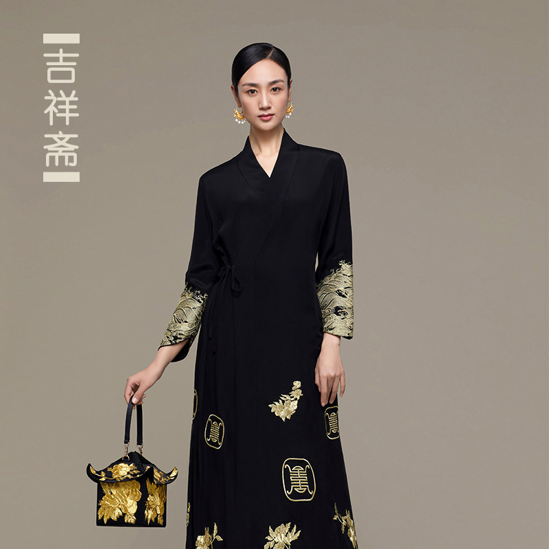 吉祥斋女装金潭系带连衣裙真丝国风礼服舞台主持专柜正品宫廷汉服
