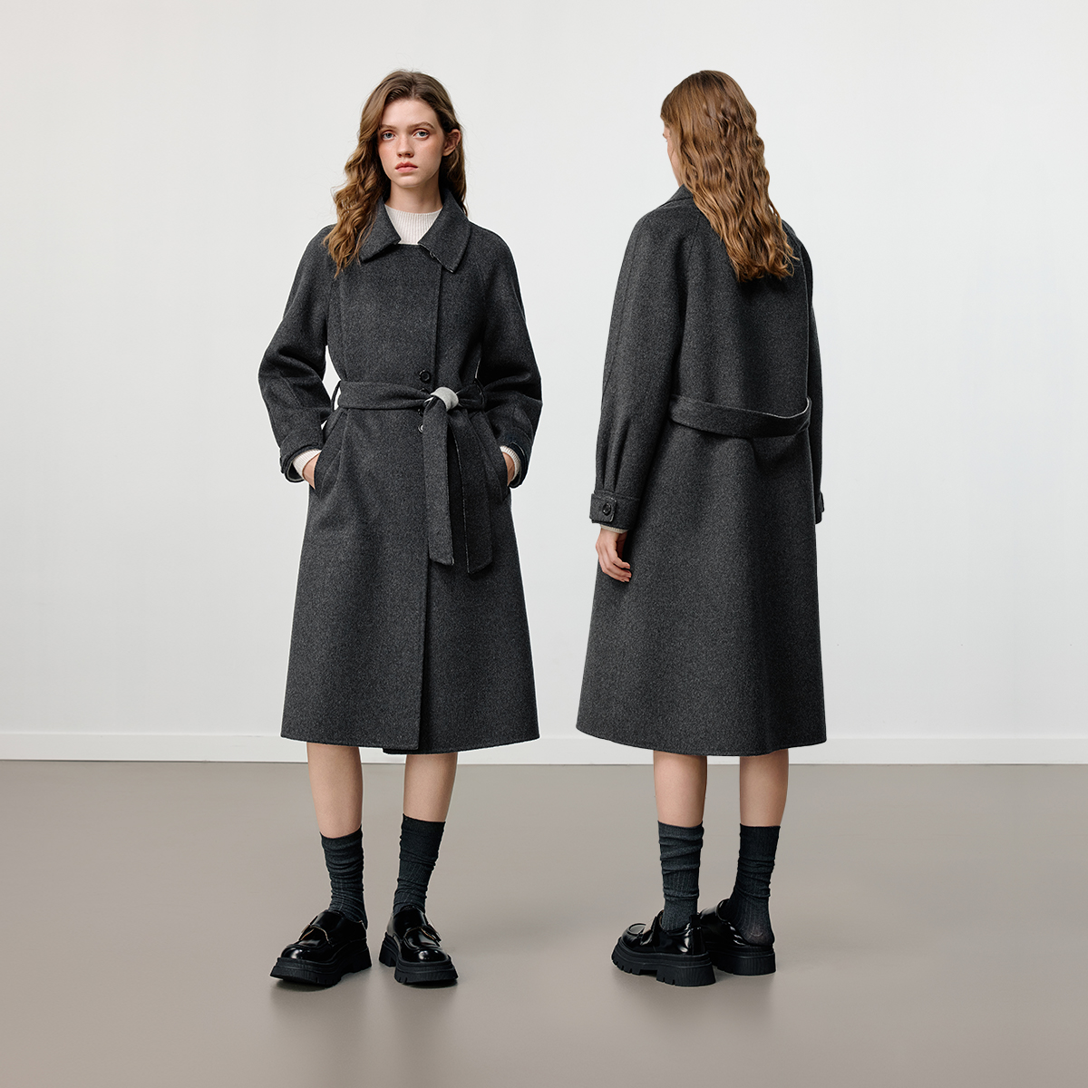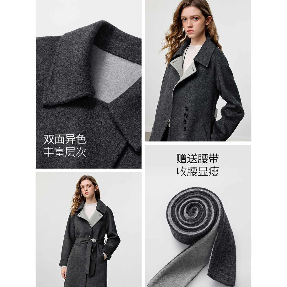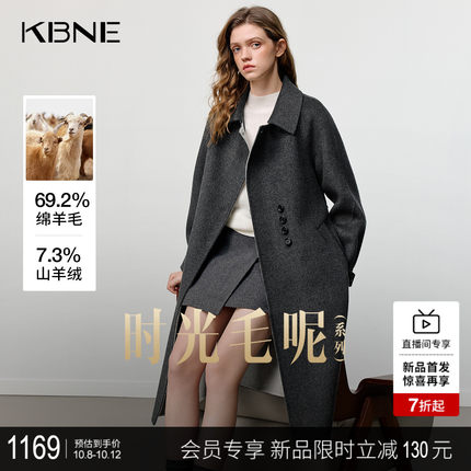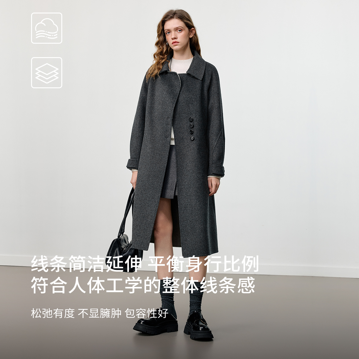 [时光毛呢]KBNE山羊绒长款毛呢外套女2025冬季新款高级感灰色大衣