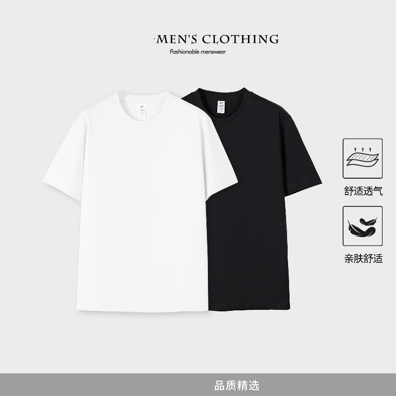 虎牙兄弟短袖t恤男款2025夏薄款透气重磅纯棉宽松百搭圆领t恤01D