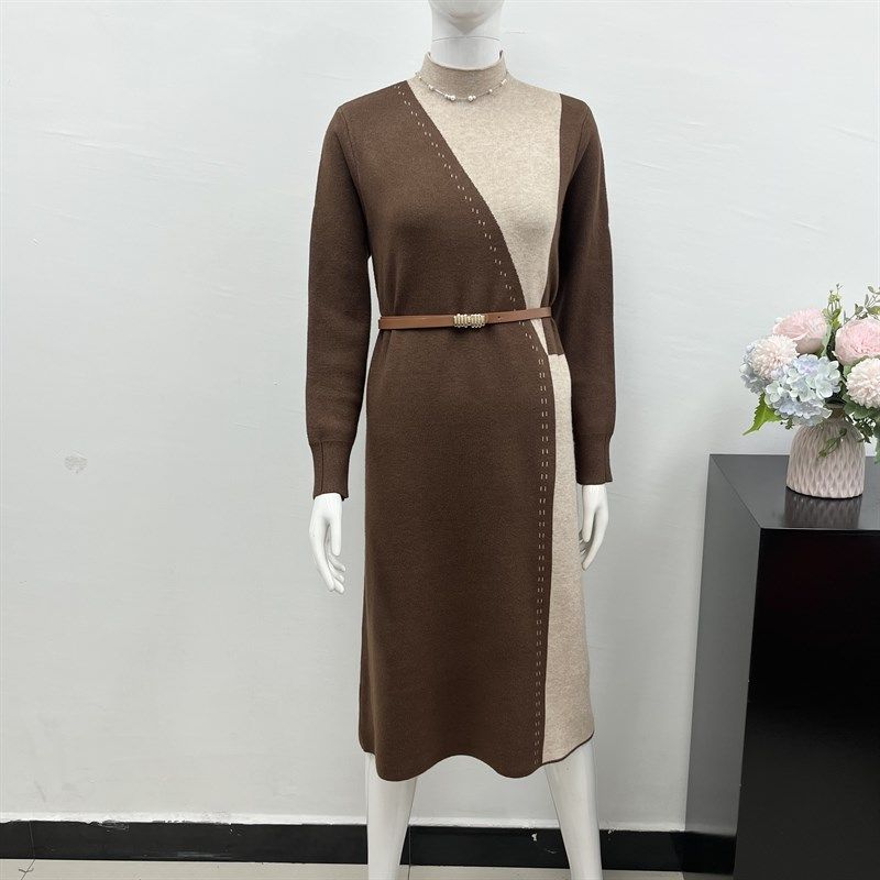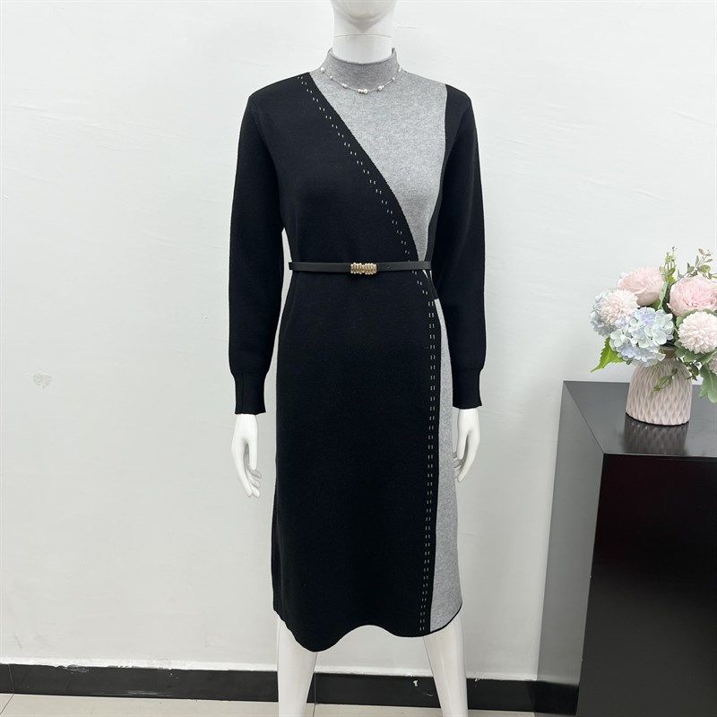 妈妈毛衣裙秋装洋气连衣裙2024新款中老年女装秋冬半高领针织裙子