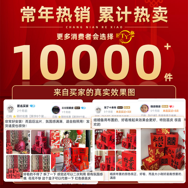 婚房布置婚礼卧室客厅立体喜字落地摆件装饰酒店结婚套装堆头盒子