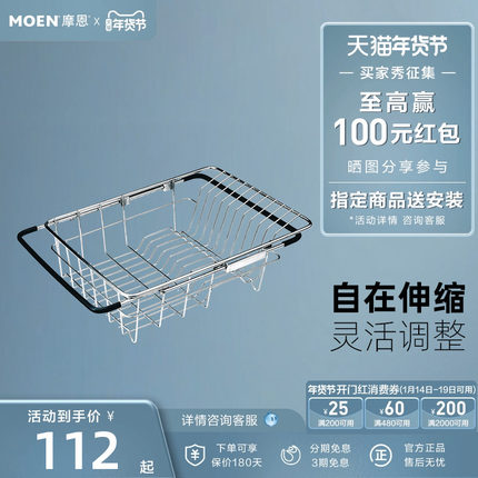 摩恩不锈钢耐用可调式沥水篮洗菜篮厨房水槽配件水池大单槽23701