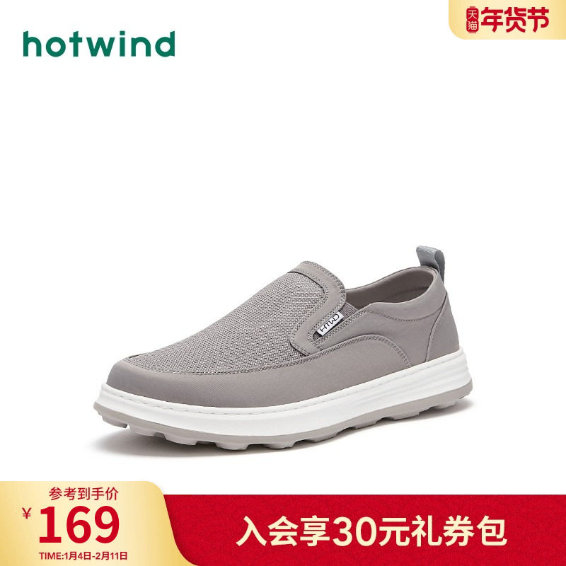 热风男鞋2025春季新款舒适布鞋时尚圆头一脚蹬轻便透气休闲鞋子男