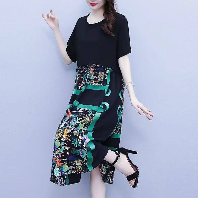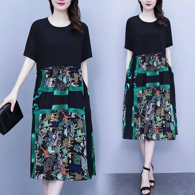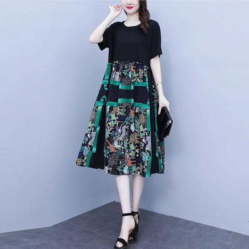 2025夏装新款裙子时尚大码女装宽松遮肉显瘦气质中长款胖MM连衣裙