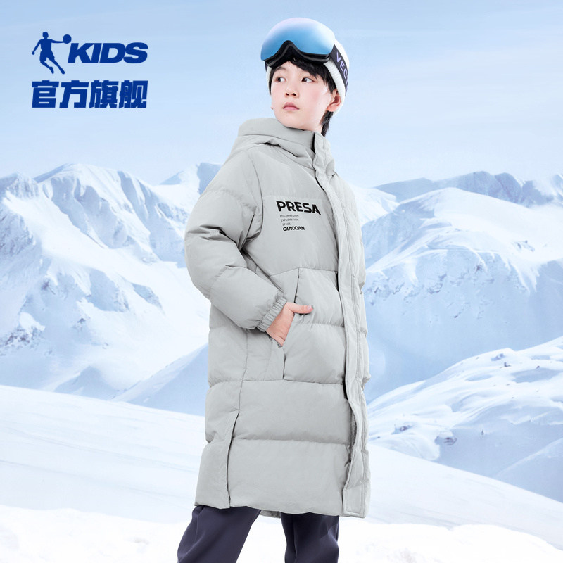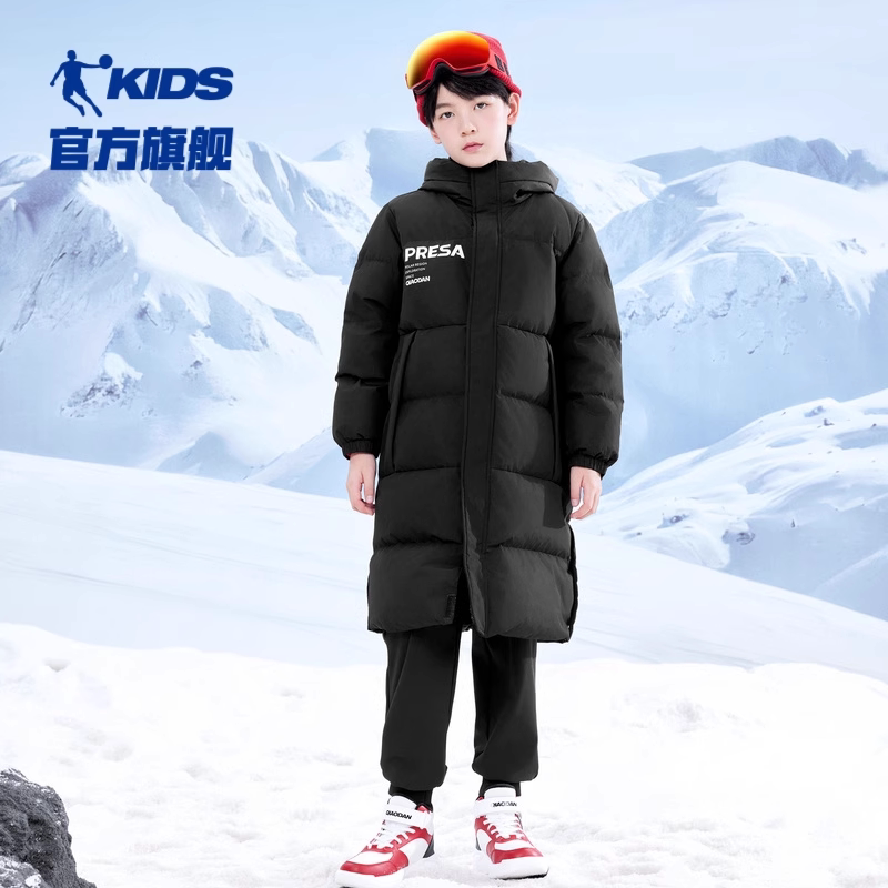 乔丹童装男童三防羽绒服长款2025冬季新款梭织连帽外套保暖滑雪服