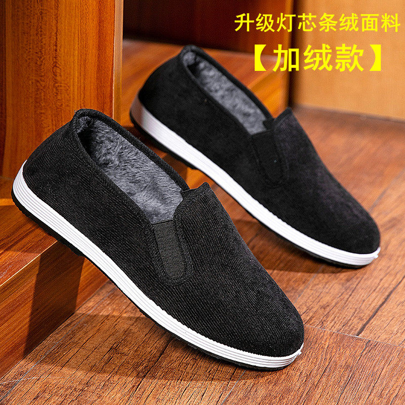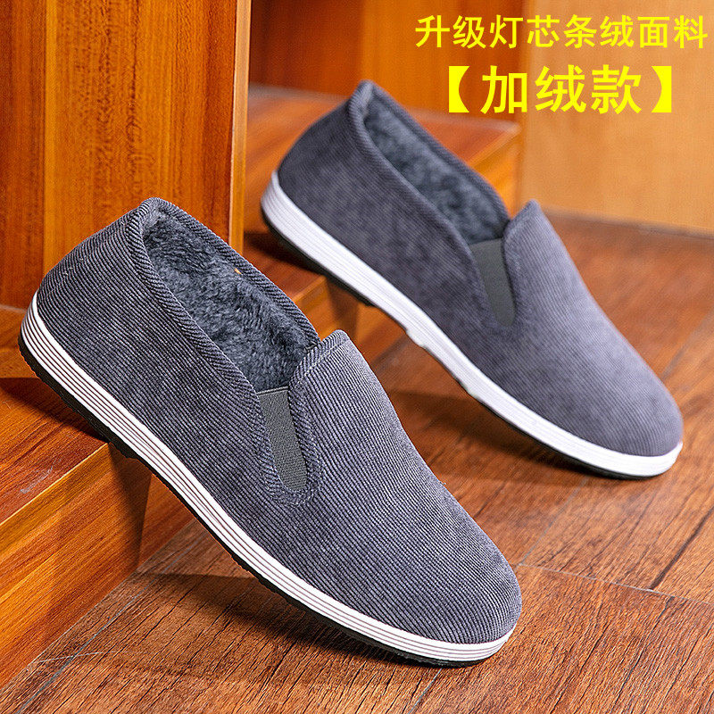 冬季老北京布鞋男棉鞋保暖工作鞋男休闲一脚蹬加绒软底男鞋开车鞋