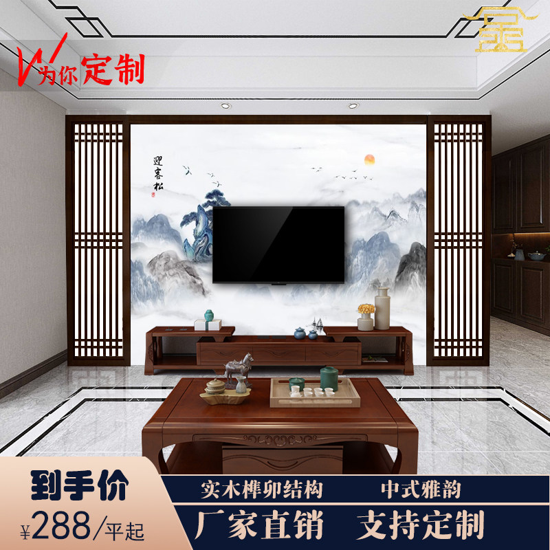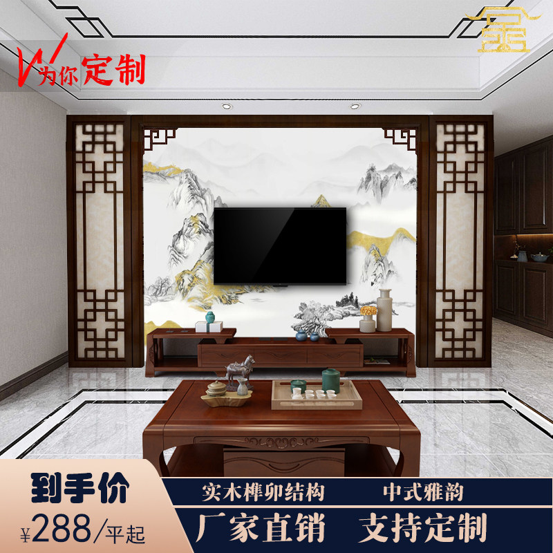 东阳木雕中式花格电视背景墙客厅镂空吊顶实木雕花隔断仿古门窗