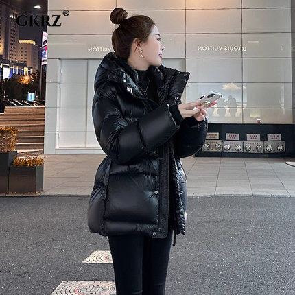 羽绒服女冬季2024年新款韩版收腰百搭连帽黑色加厚保暖小个子外套