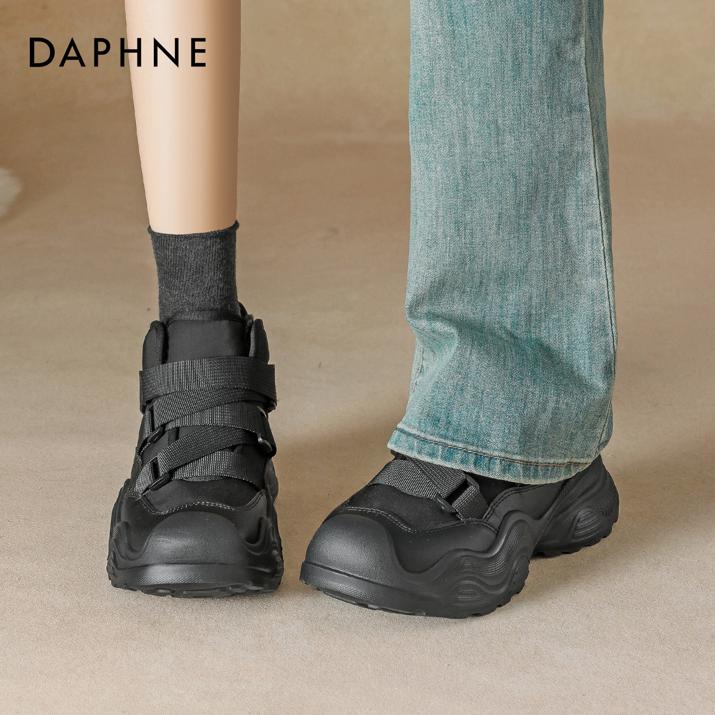 达芙妮黑色加绒老爹鞋女款雪地靴