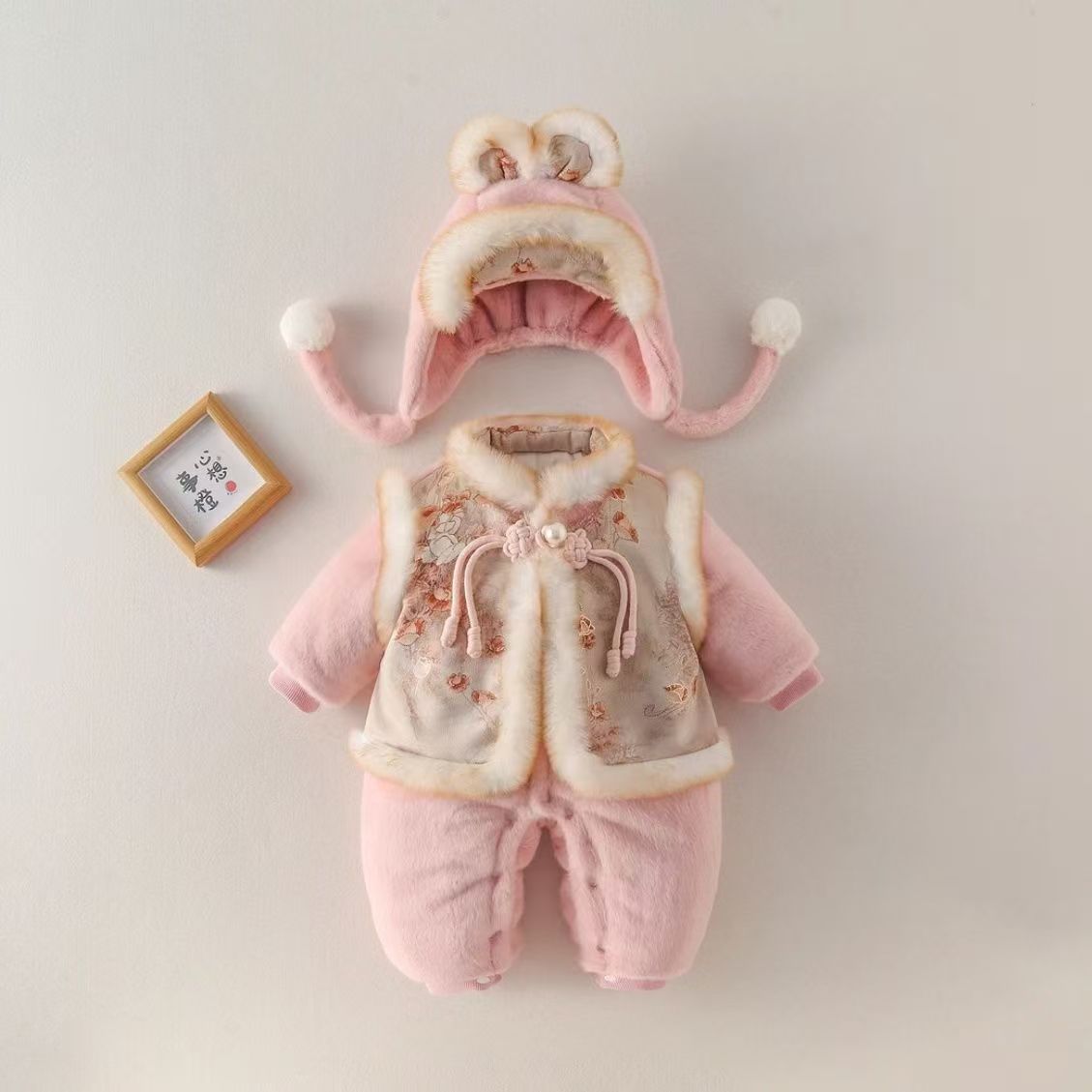 婴幼儿宝宝连体衣秋冬装可爱洋气爬爬服满月周岁棉衣外出加厚衣服