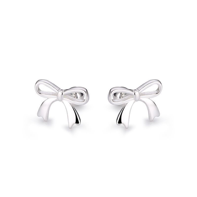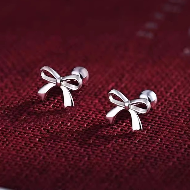 简约蝴蝶结耳钉耳骨钉耳饰亲肤防过敏适合养耳洞免摘螺丝耳环ins
