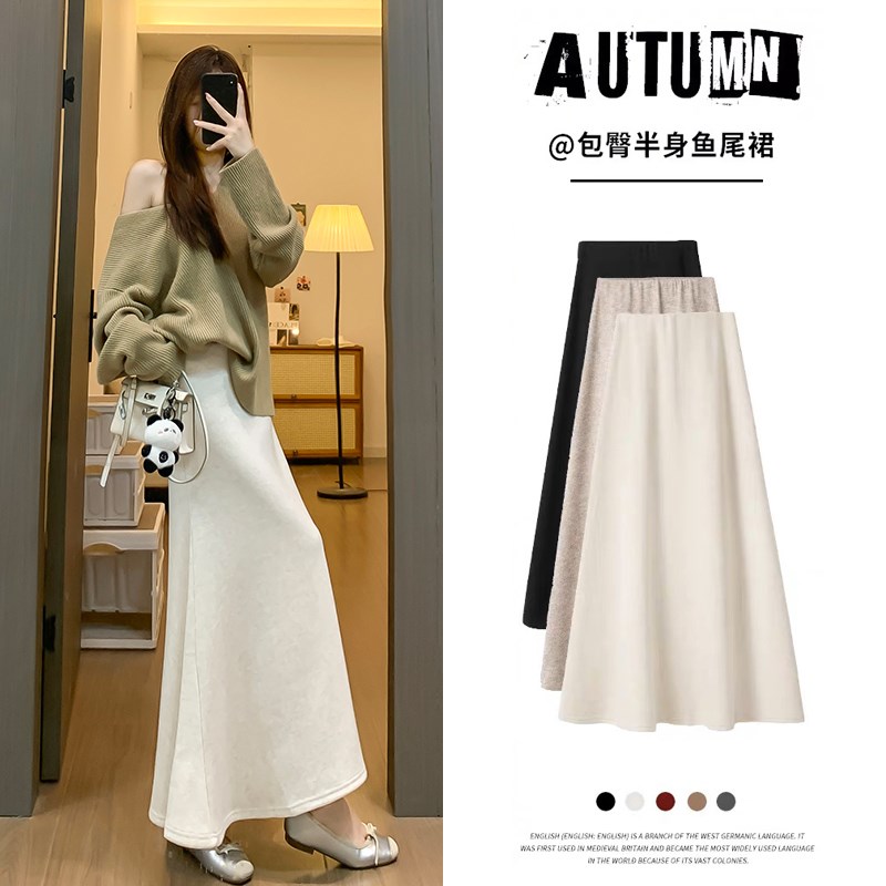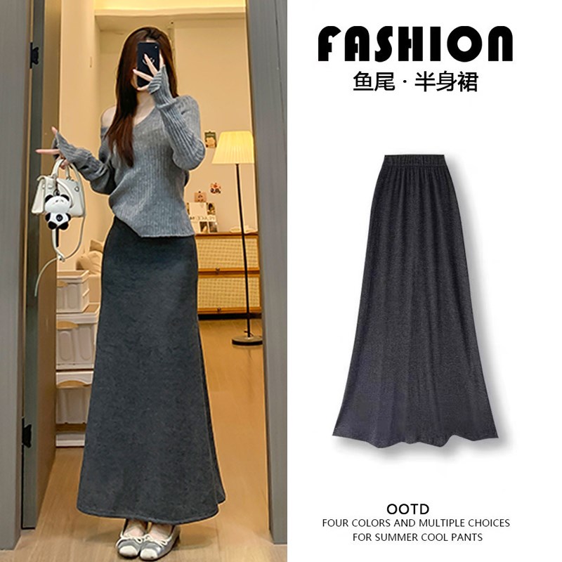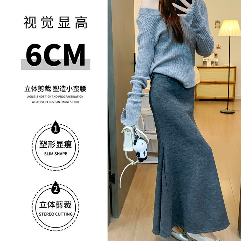 灰色针织鱼尾裙女秋冬加绒2024新款气质松弛感修身a字包臀半身裙